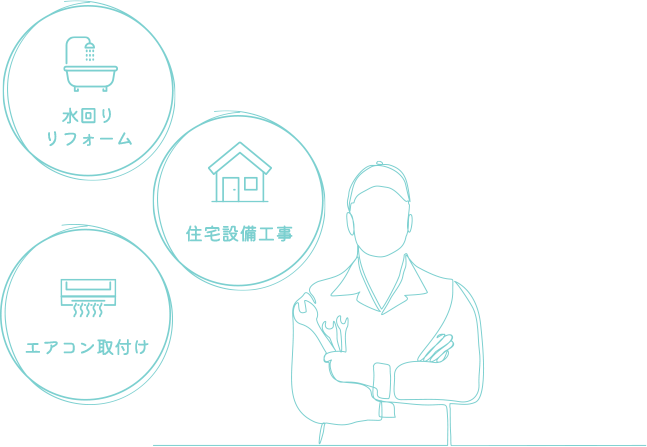 トイレ・キッチン・お風呂などの水回り設備に関する修理やリフォーム、下水道切替え工事まで幅広く対応。